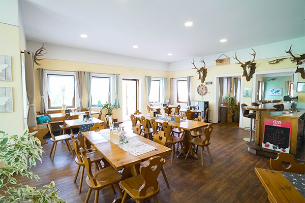 Il ristorante offre piatti tipici regionali e pizze, con servizio take-away disponibile. Ci sono inoltre un bar e una gelateria per rinfrescarsi nelle giornate estive.