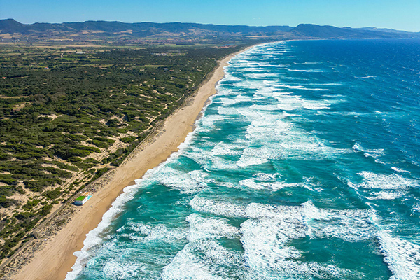 Attraverso un percorso di circa 400 metri, a tratti pianeggiante e in parte su salita/discesa ciottolosa, si accede alla magnifica spiaggia di Li Junchi di Badesi, una distesa di sabbia bianca lunga 8 km. Perfetta per chi ama il contatto diretto con la natura, la spiaggia è libera e incastonata in un contesto dunale suggestivo. A circa 3km sono presenti lidi attrezzati per chi cerca maggiore comfort. A 6 km dal campeggio, nel comune di Badesi, ci sono inoltre due spiagge dedicate ai cani.