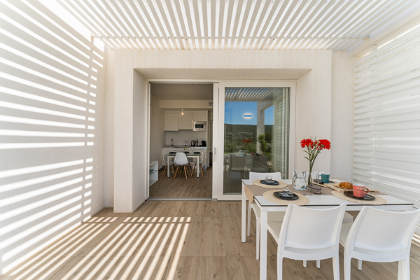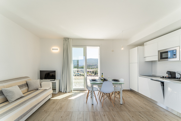 Le sistemazioni sono dotate di balcone o patio, servizi privati, asciugacapelli, aria condizionata (gratuita), angolo cottura con fornello elettrico o a gas, lavastoviglie, microonde, frigorifero, bollitore, macchina del caffè e Tv. I Bilocali Premium, di 38 mq, sono composti da soggiorno con divano letto matrimoniale e una camera matrimoniale.