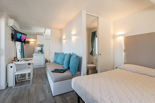 Occupazione: minimo 2 adulti / massimo 5 adulti in Casa Mobile Antares; minimo 2 adulti / massimo 4 adulti + 2 bambini fino a 7 anni in Cottage Riviera; minimo 2 adulti / massimo 6 adulti in Casa Mobile Vega.
