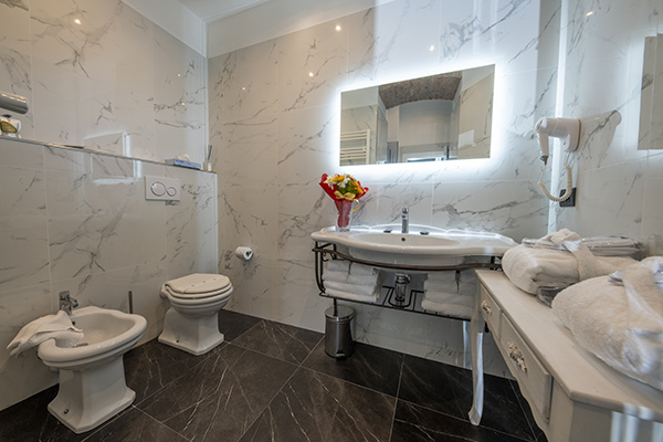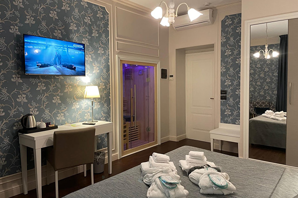 Le camere, di 35 mq, dispongono di servizi privati, asciugacapelli, cassaforte (gratuita), minibar (a pagamento), aria condizionata (gratuita), riscaldamento, telefono, Tv e Wi-Fi (gratuito).