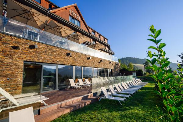 Il Grandhotel Tatra di Velké Karlovice è situato su una soleggiata collina nel pittoresco villaggio di Velké Karlovice, immerso nella Riserva Naturale dei Beskidi, non lontano dal confine slovacco. Il Grandhotel Tatra colpisce per la sua atmosfera di alta montagna e il servizio personalizzato. Come hotel a 4 stelle, offre numerosi servizi inclusi: una ricca colazione a buffet con prodotti locali e biologici, accesso illimitato al centro benessere e fitness, uno sconto del 20% sull'ingresso al parco acquatico (a 3 km dall'hotel), articoli da toeletta di lusso in ogni camera, pantofole e accappatoio in ogni camera, parcheggio gratuito e Wi-Fi. L'area benessere vanta una piscina coperta, due vasche idromassaggio all'aperto, una terrazza solarium con lettini e quattro saune diverse: una sauna finlandese, una biosauna, una cabina a infrarossi e un bagno turco.