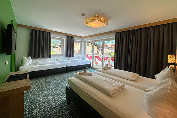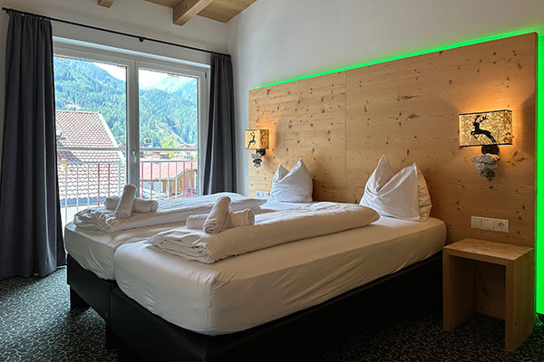 Le camere sono moderne e arredate in modo confortevole. Letti comodi, materiali caldi e molta luce naturale creano un'atmosfera piacevole, ideale per rilassarsi dopo una giornata attiva in montagna.