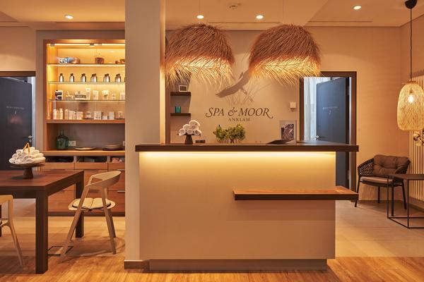 La moderna area benessere Spa & Moor Anklam di 600 m² promette pace e relax con un'ampia piscina coperta, due saune, un'elegante area relax ed esclusivi massaggi e trattamenti estetici e per il corpo.