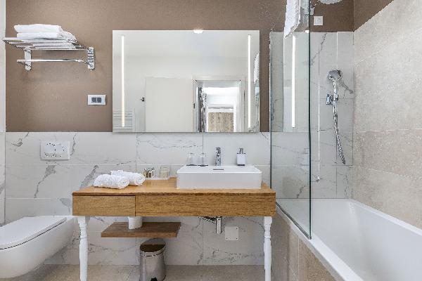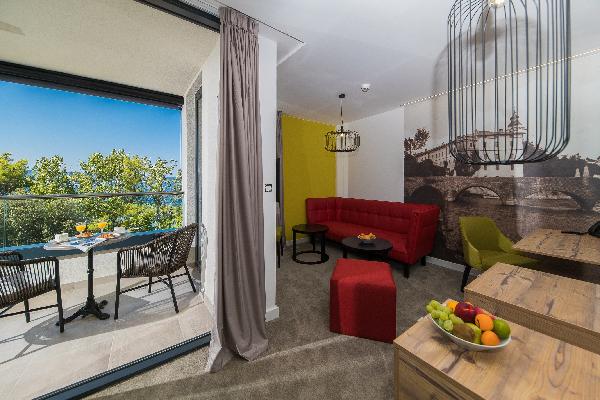 Costruito originariamente nel 1930 e completamente ristrutturato nel 2017, emana fascino da ogni angolo, a pochi passi dalla spiaggia sabbiosa e con una vista mozzafiato sull'isola di Veglia. Un'oasi di pace e bellezza, a pochi passi dal centro città, ma in posizione perfetta direttamente sul lungomare, è il punto di partenza ideale per lunghe e romantiche passeggiate in riva al mare.