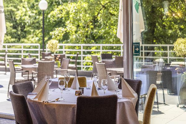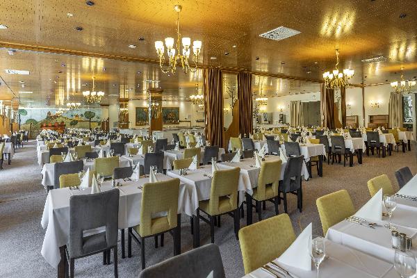 Il ristorante à la carte dell'hotel offre piatti culinari riconoscibili. Il centro termale e benessere dell'hotel comprende una palestra, una sauna finlandese, un bagno turco e un'ampia vasca idromassaggio (idromassaggio). Gli ospiti possono rilassarsi nel giardino d'inverno dell'hotel.