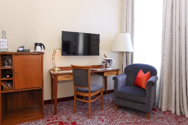 Tutte le camere del Kaiserhof Hotel Wien sono dotate di aria condizionata, smart TV con funzione streaming, minibar, set per la preparazione di tè e caffè e bagno con asciugacapelli e specchio cosmetico. Su richiesta, è possibile prenotare anche camere anallergiche.
