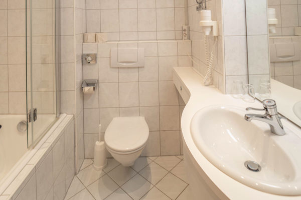 Bagno: Vasca da bagno/doccia, WC, Asciugacapelli, Accappatoio - gratuito, Ciabatte - opzionale a pagamento in loco, EUR 4,00 per persona e a soggiorno