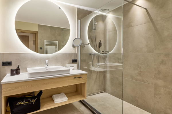 L'area benessere del Milderer Hof comprende varie saune, un bagno di vapore, un'area fitness e una vasta gamma di trattamenti estetici e massaggi.