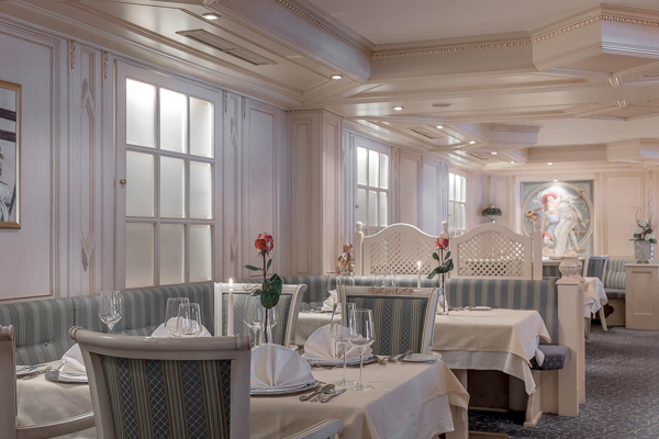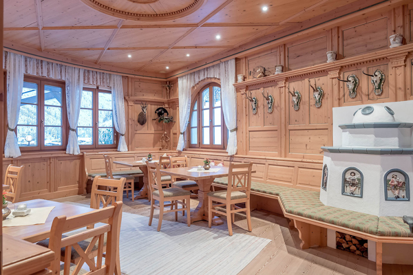 Un bar dell'hotel con camino e una pensione di lusso con cucina regionale e internazionale garantiscono il vostro benessere fisico. Ogni mattina è disponibile una ricca colazione a buffet. La pensione lusso 3/4 comprende un piccolo pranzo a buffet, caffè, tè e dolci nel pomeriggio, nonché un menù serale a scelta di 5 portate per la cena.