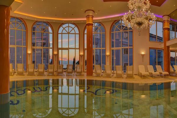 Dimensioni area wellness 1000 m², Area piscina - gratuito, Piscina all’aperto 200 m², Piscina coperta 90 m², Zona sauna - gratuito, Bagno di vapore - gratuito, Sauna - gratuito, Sauna finlandese - gratuito, Idromassaggio - gratuito, Sala relax 1x, Massaggi - opzionale a pagamento in loco, Beauty Center - opzionale a pagamento in loco, Giardino, Prato, Sedie a sdraio - gratuito, Ombrelloni - gratuito, spiaggia privata, Sedie a sdraio in spiaggia - gratuito, Ombrelloni in spiaggia - gratuito