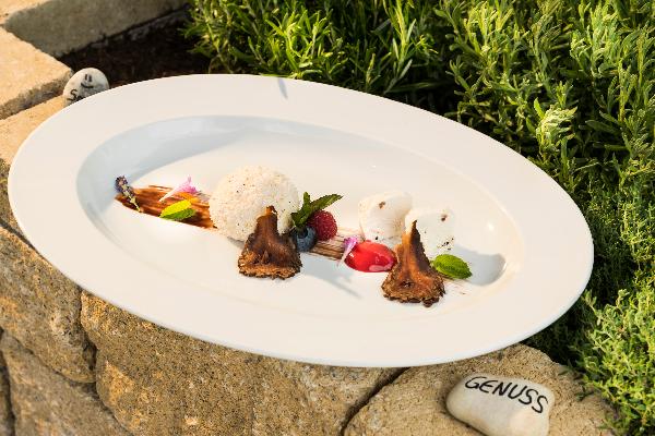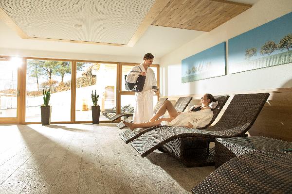 Tornando a casa, chi ama rilassarsi può aspettarsi la propria area benessere per soli adulti con un'offerta accogliente, calda, fredda e umida. Ma ovviamente anche le famiglie sono ben soddisfatte: una piscina all'aperto di 16x5 m riscaldata tutto l'anno, una sauna per famiglie e sale relax su quasi 1000 m2 assicurano che tutti stiano bene - e che la fame abbia la meglio fino al banchetto serale.