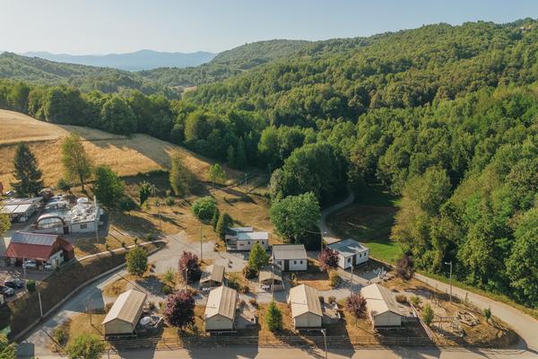Un esclusivo rifugio in campagna che offre una combinazione di camere, appartamenti e lussuose case mobili. La struttura dispone di un centro benessere, una piscina all'aperto, una sala degustazione vini, un negozio di souvenir e una varietà di servizi immersi in una natura incontaminata, ideale per famiglie, gruppi e amanti della natura.