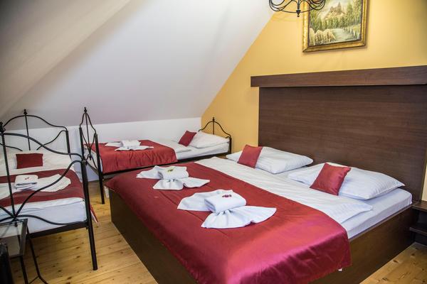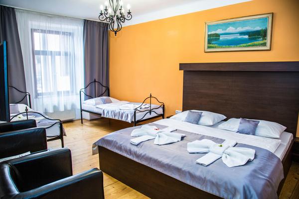 Durante l'alta stagione (da maggio a settembre; durante la bassa stagione è aperto il ristorante del Rožmberk Pivovar), gli ospiti possono usufruire di uno o due ristoranti. L'hotel dispone di 23 camere in tre edifici nel centro della città, due dei quali si trovano sulla piazza principale e uno in Piazza Santa Zofia, lontano dal traffico principale. La reception centrale si trova nel recentemente ristrutturato Pivovar Rožmberk Brewery Hotel, dove la colazione viene servita tutti i giorni dalle 8:00 alle 10:00 nel ristorante.