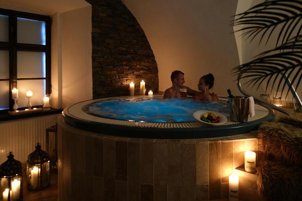 L'hotel castello offre inoltre un ampio e grazioso centro benessere, con un'ampia scelta di massaggi e trattamenti benessere, oltre a una spa con birra. Gli orari di apertura del centro benessere sono i seguenti: tutti i giorni dalle 10:00 alle 22:00. I dintorni dell'hotel sono molto belli, poiché la famosa città termale di Luha?ovice e la catena montuosa dei Carpazi Bile sono facilmente raggiungibili in pochi minuti di auto.