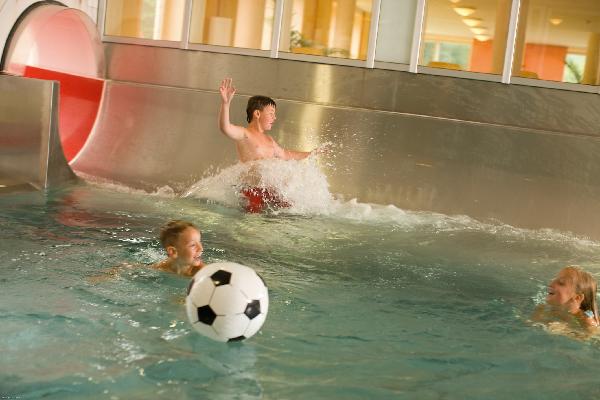 La nostra area benessere con un'ampia zona sauna e piscina coperta vi invita a fare pause rilassanti. La terrazza soleggiata del bar è un popolare punto d'incontro per grandi e piccini. Gli amanti dello sport potranno divertirsi nel campo da gioco, così come nei campi da beach volley, tennis e calcio per partite emozionanti.