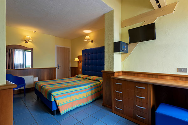 Le camere sono dotate di balcone, servizi privati, asciugacapelli, aria condizionata (gratuita, solo nei mesi di luglio e agosto), cassaforte (gratuita), telefono e Tv. Le Camere singole Standard sono di 12 mq, le Camere doppie/triple/quadruple Standard sono di 16 mq, mentre le Camere doppie Comfort sono di 18 mq.