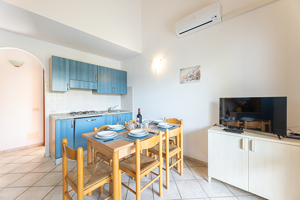 Gli appartamenti, funzionali e ben arredati, dispongono di patio o balcone, servizi privati, asciugacapelli, aria condizionata (gratuita), angolo cottura con fornello elettrico o a gas, frigorifero, microonde, lavastoviglie, lavatrice e Tv. I Bilocali Standard, di 33 mq, sono composti da un soggiorno con divano letto doppio e una camera matrimoniale; i Trilocali Standard, di 43 mq, sono disposti su due livelli e composti da soggiorno con divano letto doppio, una camera matrimoniale, una camera con letto a castello e due bagni.