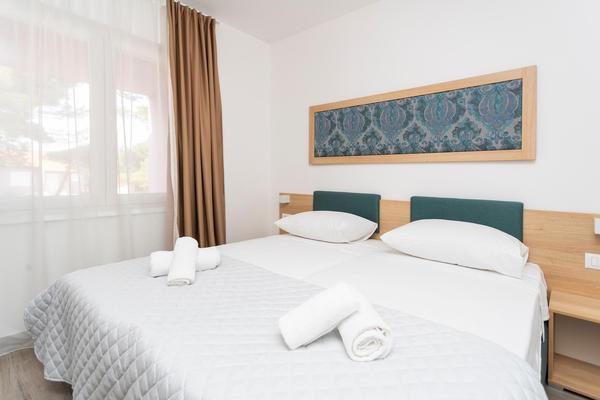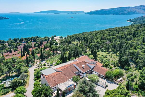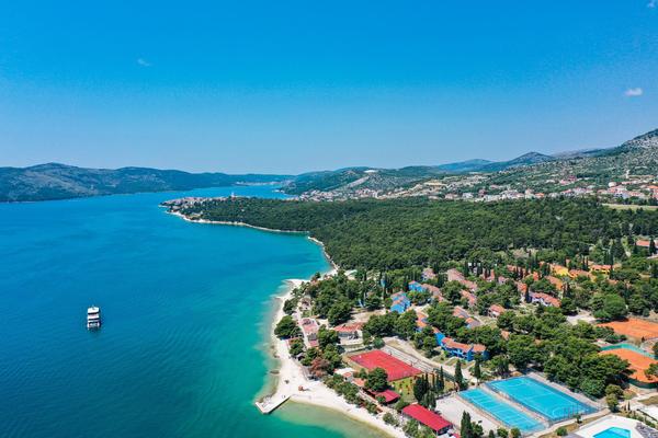 dalla città di Spalato. Il resort è situato in una zona tranquilla vicino al mare o alla spiaggia, con vista sulla baia e sul centro storico di Traù, immerso in una pineta.