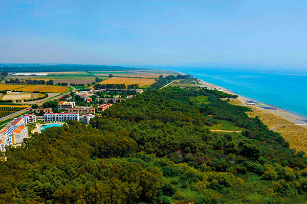 A soli 300 mt ampia spiaggia di sabbia e ghiaia con fondale digradante, facilmente raggiungibile attraverso la pineta. Il lido è attrezzato con ombrelloni e lettini, chiosco bar e campo da beach volley. Possibilità noleggio teli mare.