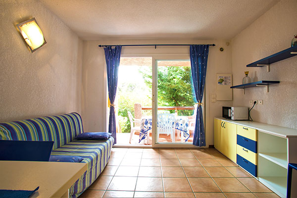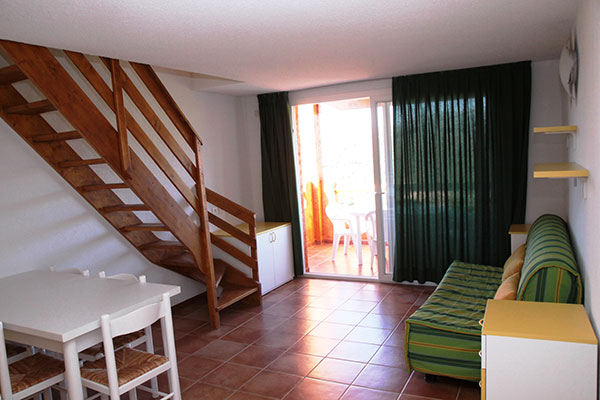 Le sistemazioni dispongono di balcone, servizi privati, aria condizionata (gratuita), angolo cottura con fornello elettrico o a gas, frigorifero, microonde, bollitore, tostapane e moka italiana. Sono disposti al piano rialzato o 1° piano e alcuni sono mansardati (su 2 livelli). I Bilocali sono di 30 mq e sono composti da soggiorno con divano letto matrimoniale e camera matrimoniale. I Trilocali sono di 46 mq e sono composti da soggiorno con divano letto matrimoniale, camera matrimoniale e camera doppia con letti singoli. I Trilocali D.S. sono di 46 mq e sono composti da soggiorno con divano letto matrimoniale, camera matrimoniale, camera doppia con letti singoli e doppi servizi. I Quadrilocali D.S. sono di 70 mq e sono composti da soggiorno con divano letto matrimoniale, 2 camere matrimoniali, camera doppia con letti singoli e doppi servizi.