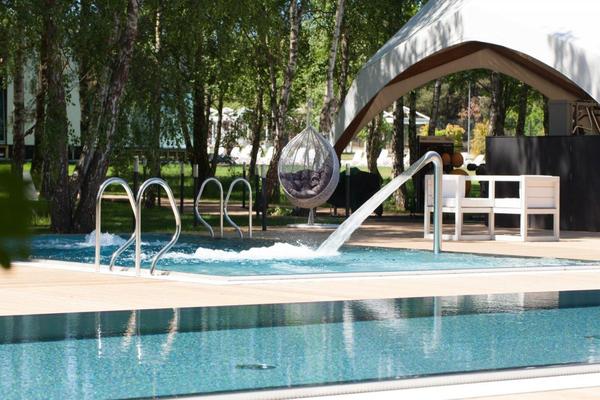 Das Resort erstreckt sich über eine Fläche von 7 Hektar und wurde mit großem Respekt für die Natur entworfen. Die minimalistische Architektur fügt sich harmonisch in den umliegenden Wald und den prachtvollen Garten ein und schafft so eine perfekte Verbindung zwischen Comfort, Eleganz und natürlicher Schönheit.