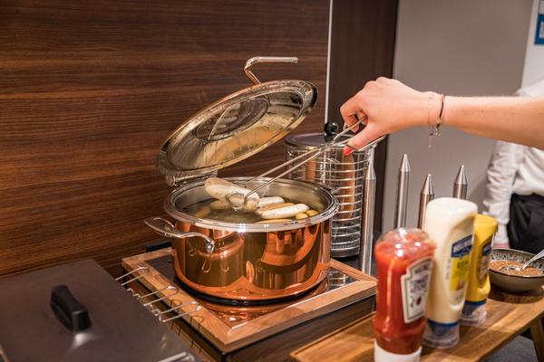Al mattino, una colazione ricca e rinfrescante delizia il palato con prelibatezze regionali e internazionali. Distribuito su 12 metri lineari, troverete un buffet caldo e freddo con salsicce bianche di Monaco e molte altre prelibatezze.