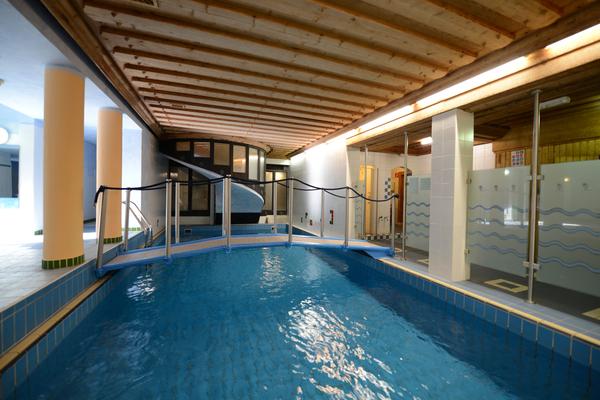 Dimensioni area wellness 180 m², Area piscina: Bambini da 0 anni. Solo se accompagnati da adulti, Piscina coperta 10 m x 4 m, Zona sauna: Bambini da 16 anni, Bagno di vapore, Sauna, Cabina a raggi infrarossi, Sala relax, Zona nuda, Giardino, Prato, Sedie a sdraio - gratuito