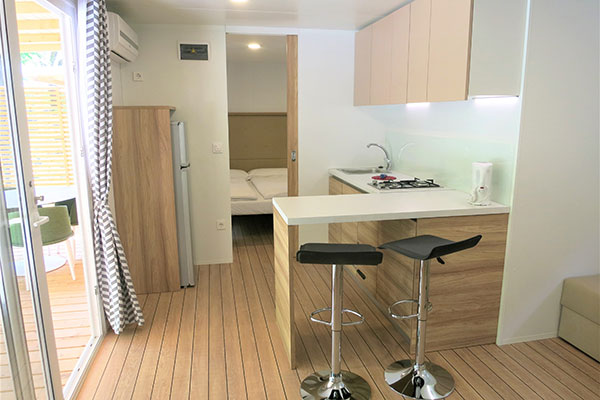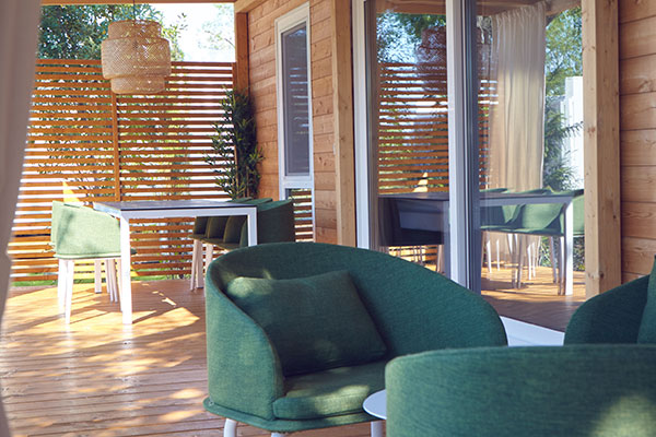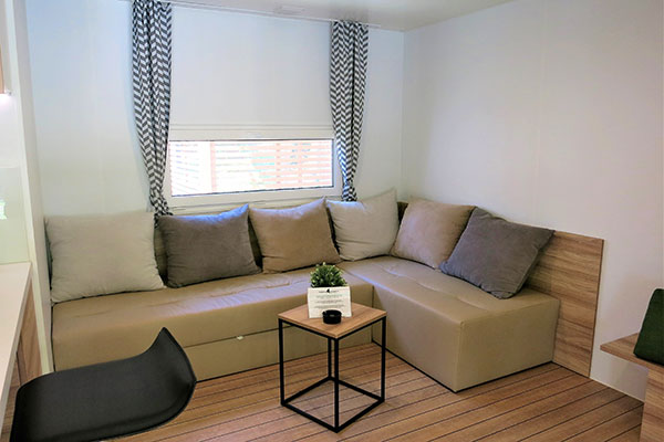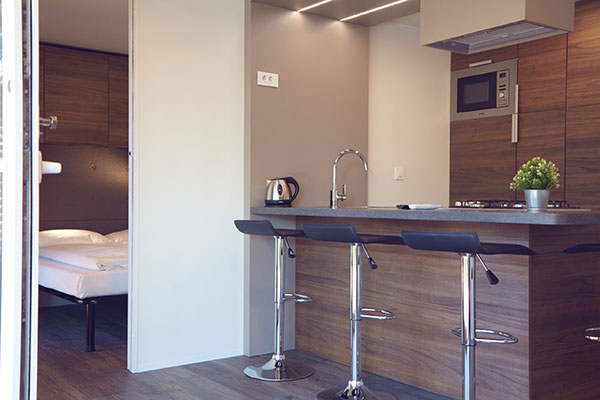 Le sistemazioni dispongono di servizi privati, terrazza, aria condizionata e riscaldamento (gratuiti per 10 ore al giorno), angolo cottura e frigorifero. Le Lodge Deluxe sono dotate di lavastoviglie, microonde e macchian del caffè, le Lodge Comfort di macchina del caffè, i Cottage Superior 2 di fornello elettrico o a gas e microonde e le Lodge Superior di macchina del caffè e microonde. Le Lodge di tipo Deluxe e Comfort dispongono di una zona giorno, una camera da letto matrimoniale ed una camera con due letti singoli. Le Lodge di tipo Superior dispongono di una zona giorno ed una camera con letto matrimoniale e 4 letti singoli. I Cottage Superior 2 sono composti da una zona giorno ed una camera da letto matrimoniale.