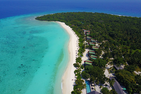 Situato sull’isola abitata di Hanimaadho, a 45 minuti di volo interno dall’aeroporto di Male, The Barefoot Eco Hotel 4* è una struttura eco-sostenibile che permette di vivere a contatto con la realtà locale e al tempo stesso di godere di tutti i comfort di un hotel. Circondato da una meravigliosa foresta tropicale, sorge direttamente sulla sua spiaggia privata di sabbia bianca, lunga un chilometro e bagnata dalle acque turchesi dell’Oceano Indiano. La barriera corallina dell’hotel, ancora incontaminata, è coloratissima.