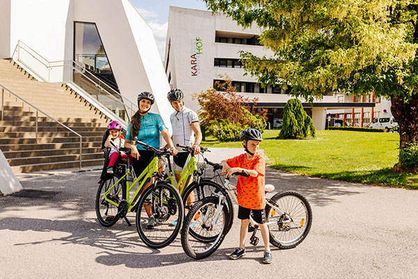 Nota: recatevi all'hotel termale Karawankenhof con bagagli leggeri! Potete noleggiare biciclette, caschi e seggiolini per bambini da noi a pagamento.