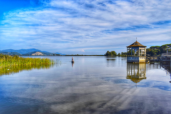 Si segue la ciclabile lungo il Serchio in direzione opposta rispetto ai giorni precedenti, tra paesaggi naturali e antiche torri di avvistamento, passando dal Castello di Nozzano. Attraverso il Parco di Massaciuccoli e costeggiando il lago si raggiunge l’imbarcadero per una breve navigazione verso Torre del Lago Puccini. Da qui si prosegue verso la costa tra pinete e spiagge fino a Viareggio.